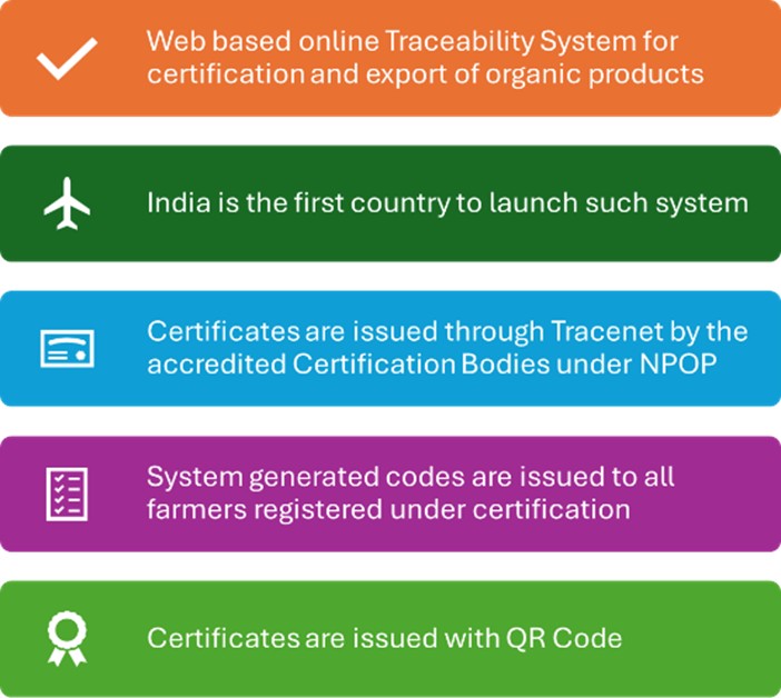 One of the important improvements in the Indian organic production system is the development of the Online Traceability System ‘TRACENET’.