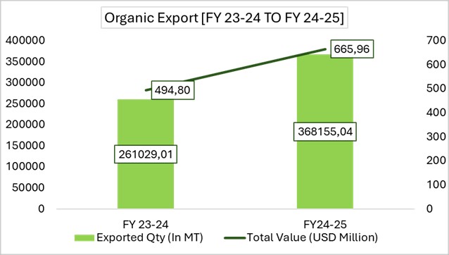 Data about exports of organic products by Indian operators show an important growth in both volumes and value.