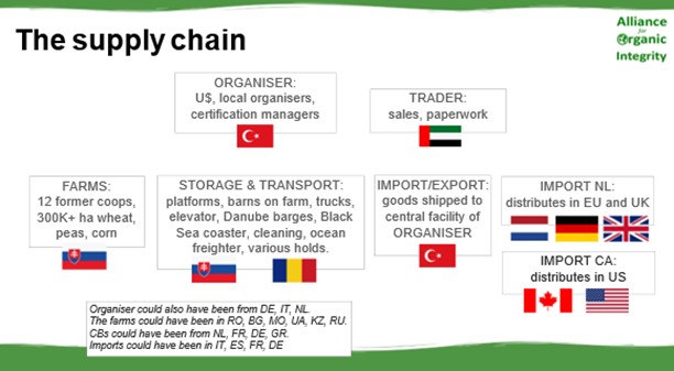 This is the write up of an AOI presentation for IOIA inspectors, early February 2024 in San Antonio, Texas. It is about a case of fraud in a supply chain involving 5 countries and 4 CBs. It was intended to give the American inspectors a taste of (potential) grain fraud in Europe, specifically Eastern Europe. Some of the wheat may have arrived in the US. There have been some big fraud cases in the US including imports of suspicious goods from Eastern Europe so the inspectors were keen to know more about that. They also wanted to test whether this kind of fraud could be better stopped by the new Rule, the SOE – Strengthening Organic Enforcement.